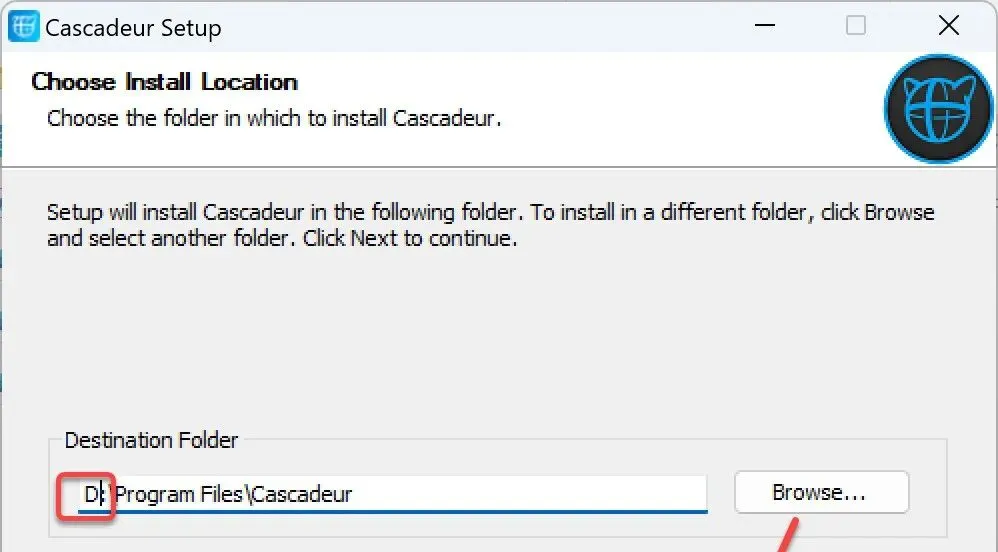 5.修改路径地址中的第一个字符C可更改安装位置(如:把C改为D软件将安装到D盘),点击【Next】。