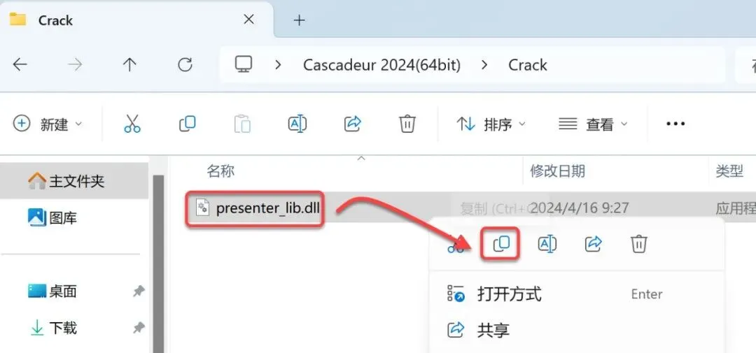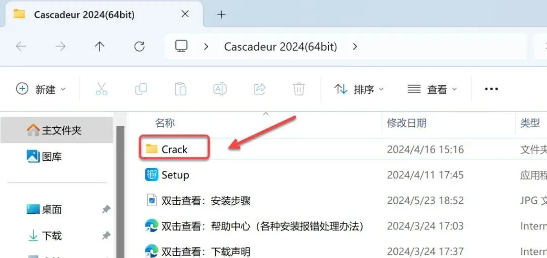 9.打开安装包解压后的【Cascadeur 2024(64bit)】文件夹,双击打开【Crack】文件夹。