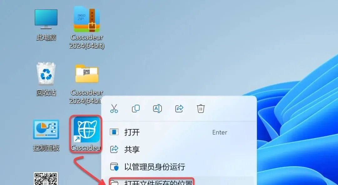 11.鼠标右击桌面【Cascadeur】图标选择【打开文件所在的位置】。
