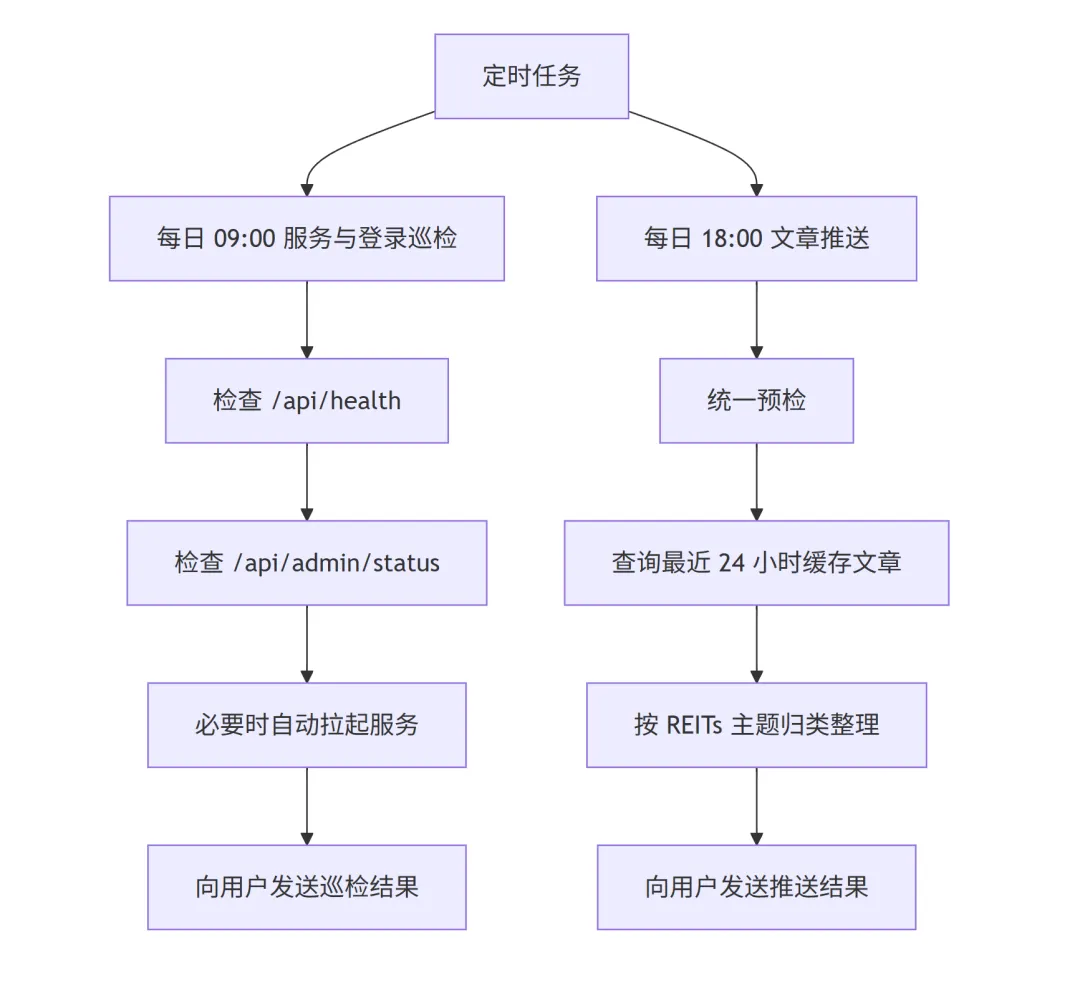 Skill 内置了两个定时任务,在 OpenClaw 配置好后会自动调度触发,无需人工干预。(你也可以根据需要调整任务的触发时间和要求等)