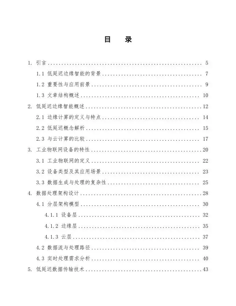 最后,第五章总结全文,回顾低延迟边缘智能的重要性与未来发展趋势,探讨其在工业物联网领域的应用前景,并展望可能的研究方向与实践挑战。