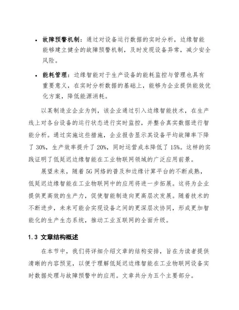 通过以上结构安排,我们力求使读者全面了解低延迟边缘智能在工业物联网设备中的具体应用、技术实现以及实践效果,以便于在实际场景中进行更深入的探索与应用。
