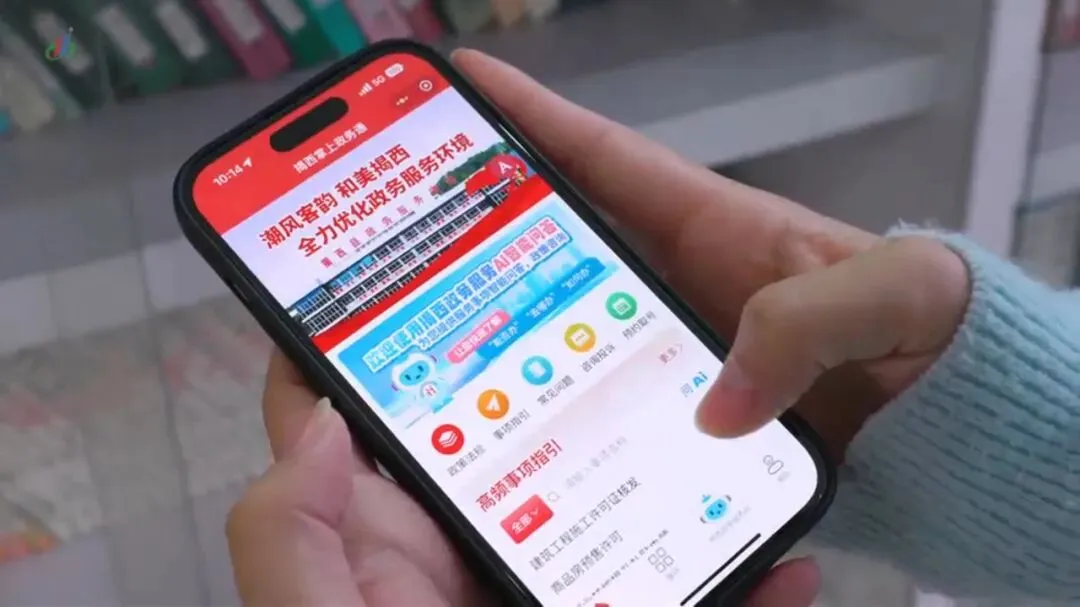 “揭西掌上政务通”小程序整合政策法规、事项指引、常见问题、咨询投诉、预约取号五大核心功能,搭载AI咨询模块,可针对社保、医保等高频业务实时生成材料清单与办理指引,还联动“粤省事”“投资揭阳”等平台实现24小时线上办件。
