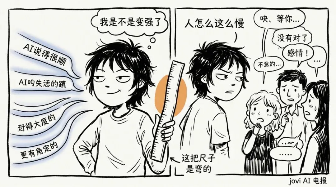 你有没有过这种感觉——用AI用久了,回去跟身边的人聊天,突然觉得对方"好慢"或者"好浅"?你当时怎么判断的?是觉得AI确实帮你变强了,还是隐约觉得哪里不对?