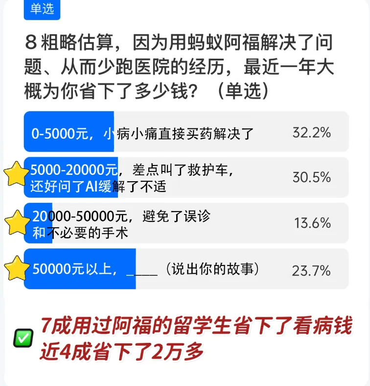 还有不少人用AI省下了看病钱,其中近4成省下了2万多块。