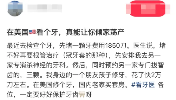 在美国更夸张,有留学生拔一根鱼刺花了2.6万人民币。