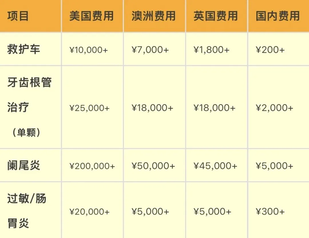 注:以上海外账单数据,均以留学生常见未购买高阶商业全险、等待期内、私立急诊的真实情况预估。