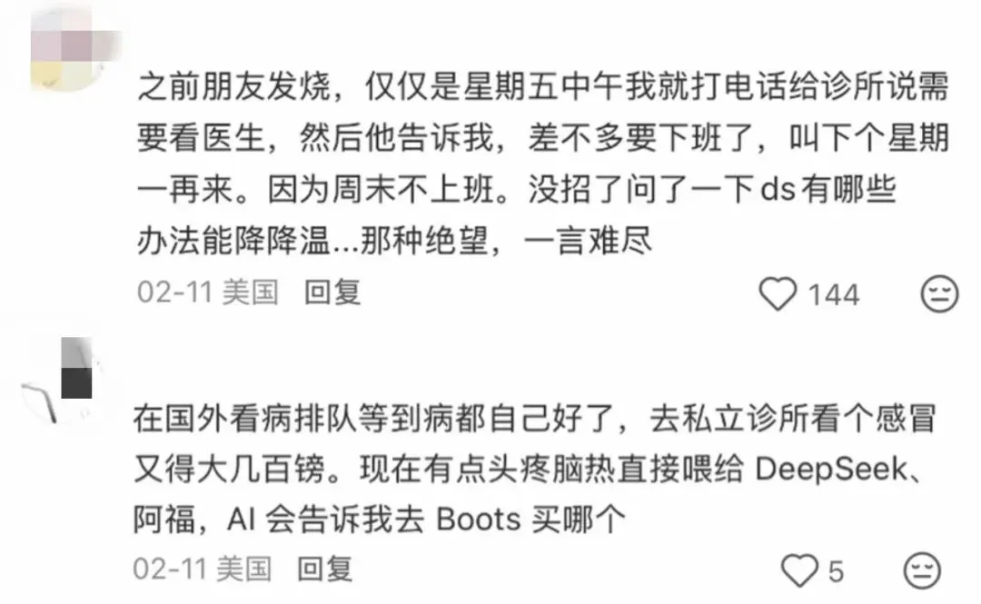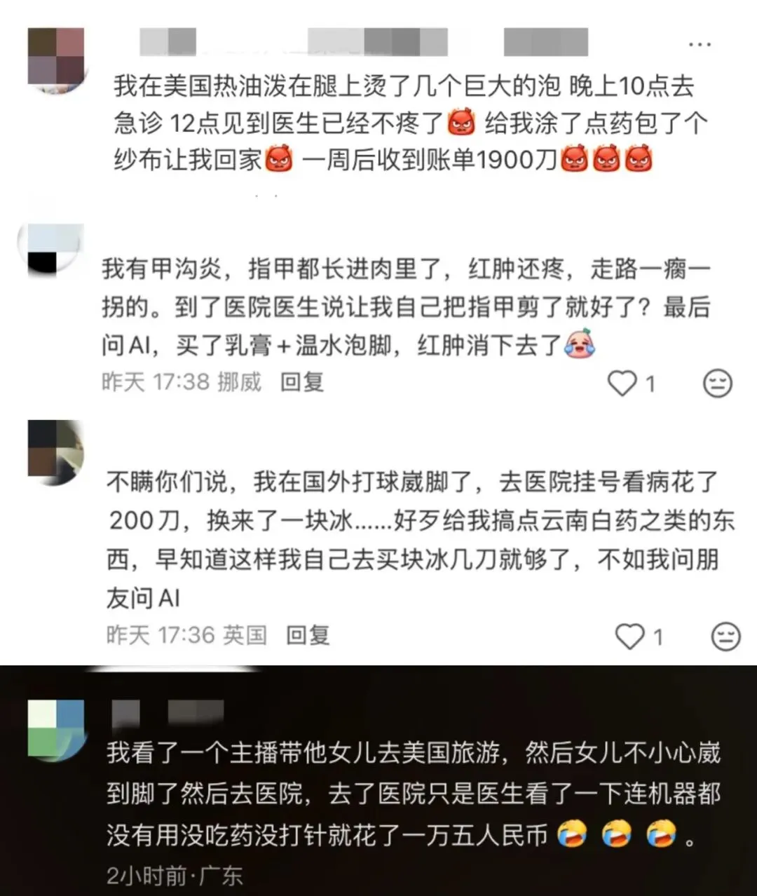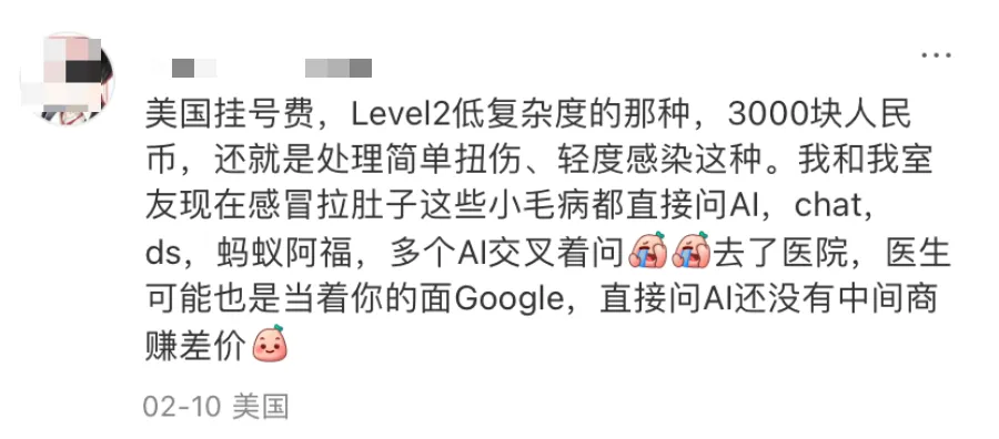 这不是个例。在那些不危及生命、但在国外预约极慢、收费离谱的“非急症”面前,AI正在成为留学生的“回血包”。