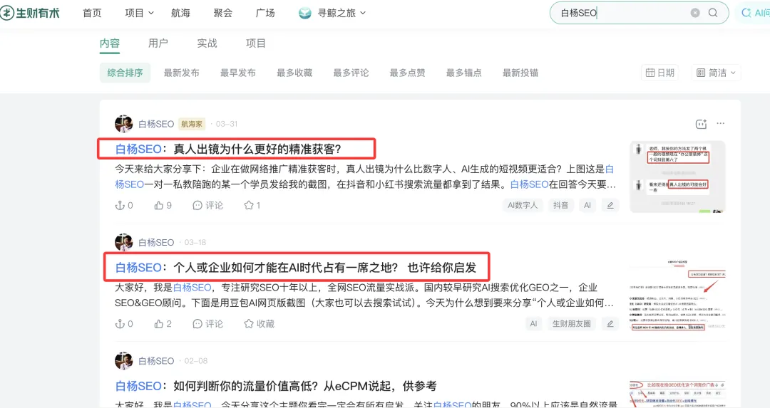 关于白杨SEO:专注SEO研究10年+,全网SEO流量实战派,AI搜索优化GEO研究者。分享SEO、流量、私域运营干货,帮助5万+从业者提升技能。如果你想进白杨SEO社群学习交流,看下面相关推荐介绍哈。