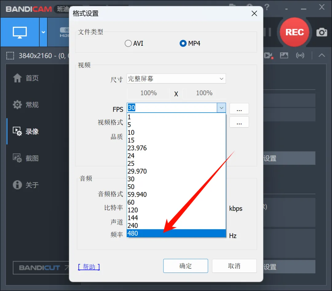 软件支持的最大帧率是480帧,我们还可以根据自己的需求来调整视频的录制帧率。
