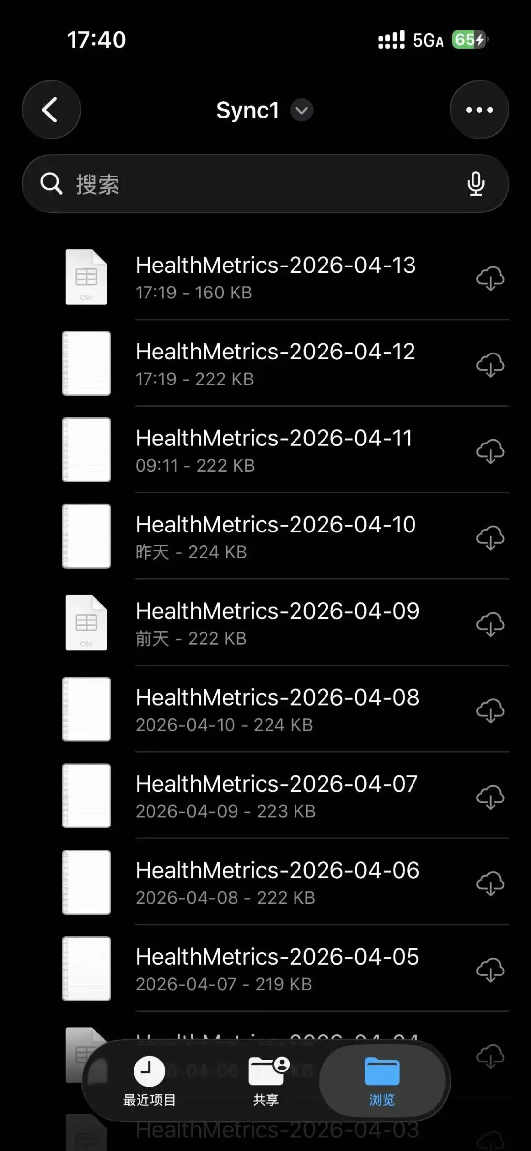 你看这张图就很直观,目录里已经在按天生成健康数据文件了。