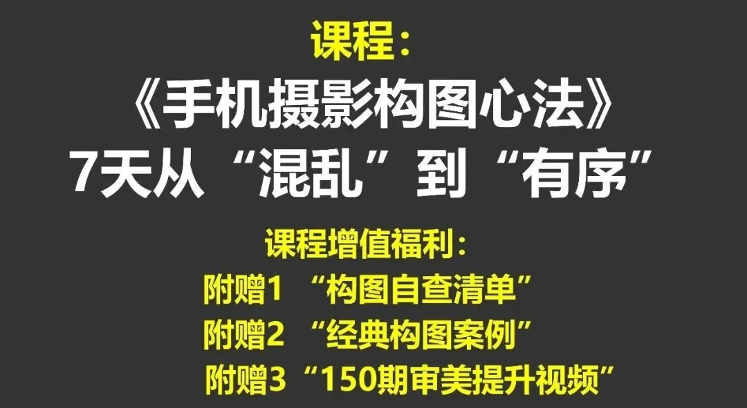 构图只是服务于画面的,都是基础知识,其实网上自己看就可以,教程满天飞。但实际上有的人一看就会,一实践就废。你需要的是拍摄思维上的转变,拍摄流程的优化。所以,针对摄影小白的这个痛点,我出了两个关于手机摄影的课程,已在小红书上架,有兴趣的朋友可以添加老师微信进行详细了解。