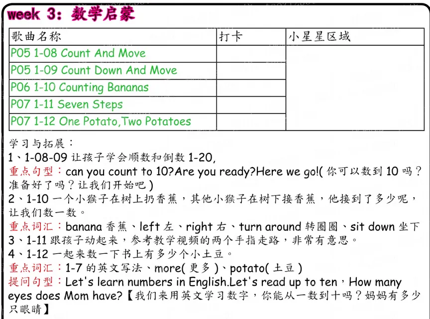复习周非常关键——按照每6周的周期设计,每4首新歌后安排2周复习,确保孩子真正内化后再推进新内容