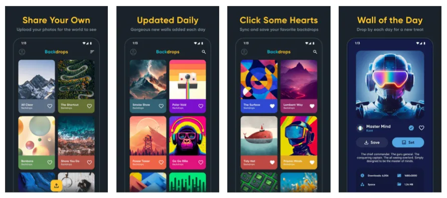Backdrops软件是一款手机壁纸获取类型的软件,在这款软件之中主要是以分类、探索、社区以及收藏等不同的模块来组成的,你可以在这款软件之中探索各种不同的壁纸,每一种主题都会在这里有其独特的分类。Backdrops软件之中不管是古风、现代、未来还是科幻等不同的壁纸你都可以很快的寻找到