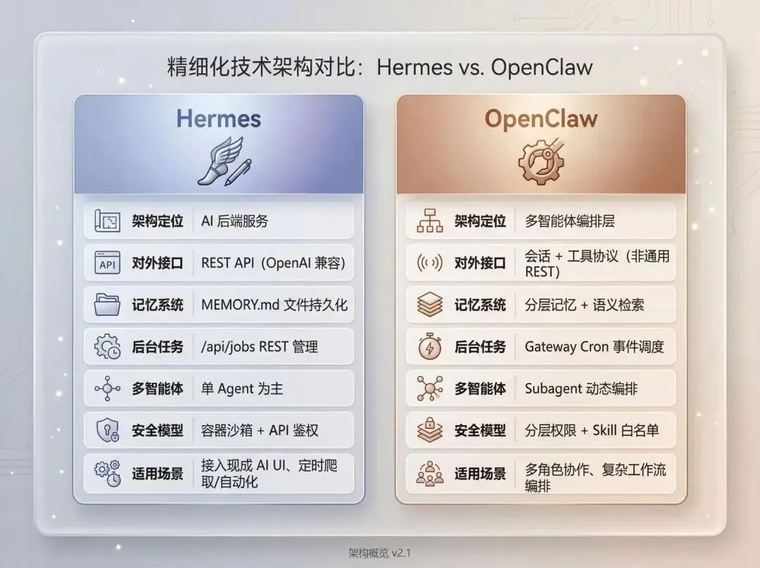两者并行也完全可行,用OpenClaw做消息路由和客户触达,用Hermes做内部深度工作。