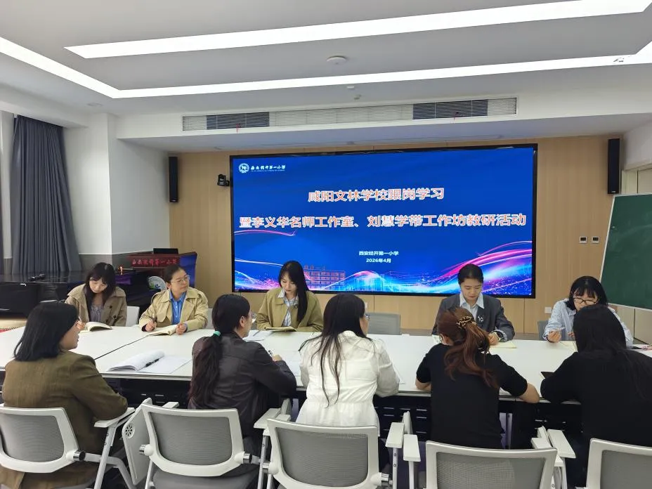2026年4月9日至10日,咸阳市文林学校教师团队来到西安经开第一小学,开展了为期两天的跟岗学习交流活动。本次活动以“聚焦新教材 赋能新课堂”为主题,以新课标理念为指导,融合人工智能技术,着力提升英语教师对新教材的运用能力,优化小学英语课堂教学质量,将立德树人根本任务落到实处。