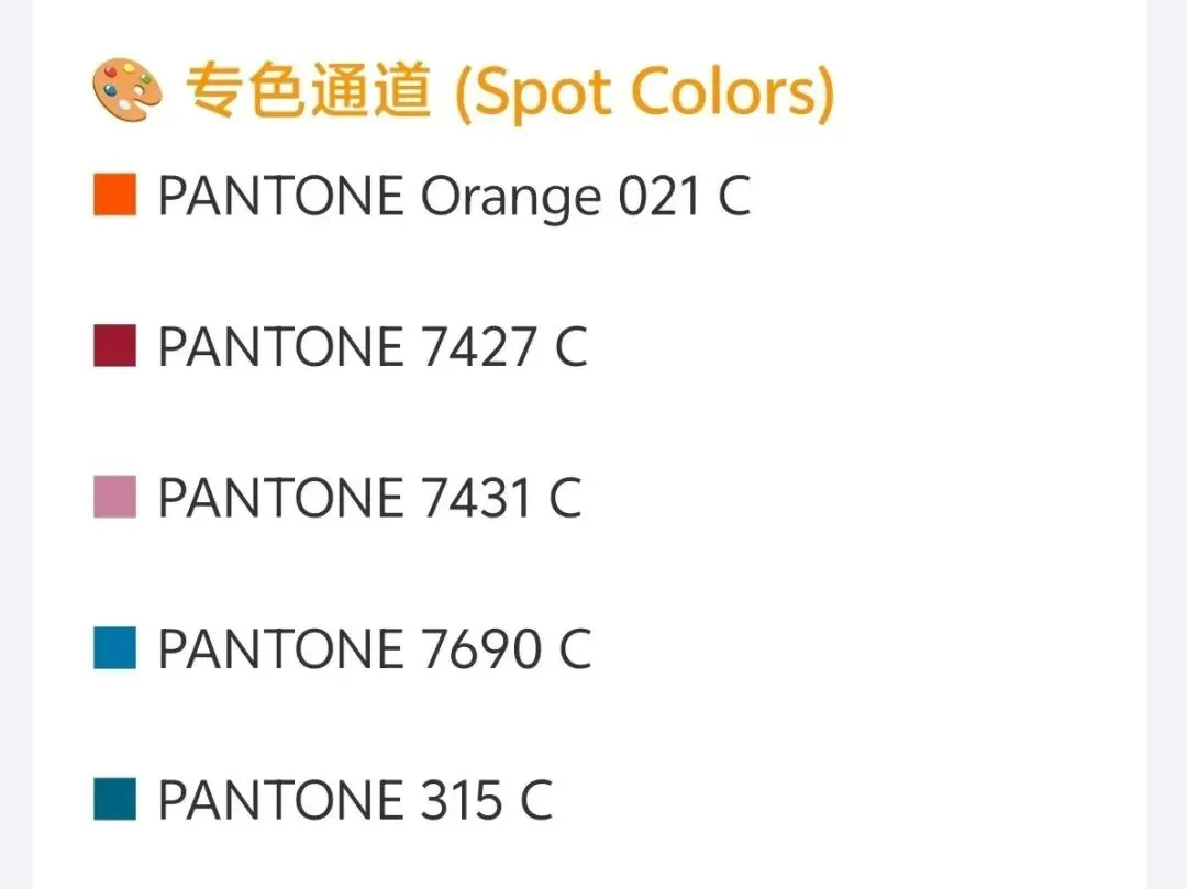 4、专色通道识别 (Spot Colors)移动端的专色探测器。深入遍历文档内的资源,把文件里包含的所有专色(Spot Colors)名称全部扒出来,同时也显示这个专色的外观。