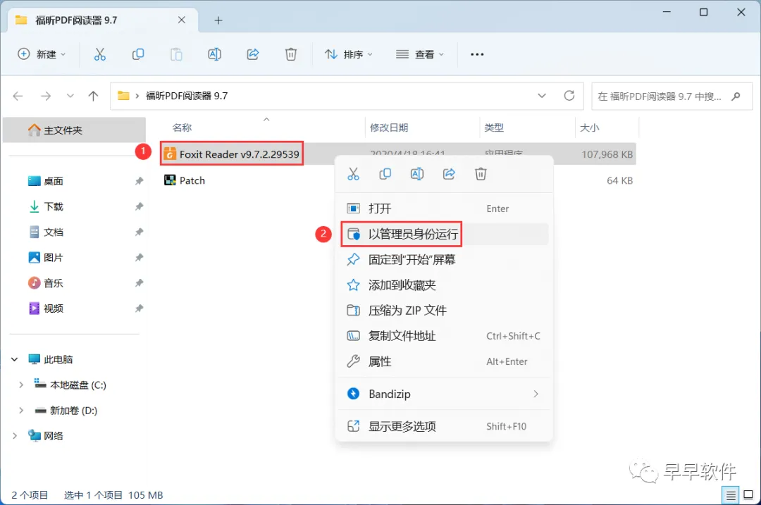3、找到【Foxit Reader v9.7…】应用程序,右键选择【以管理员身份运行】它