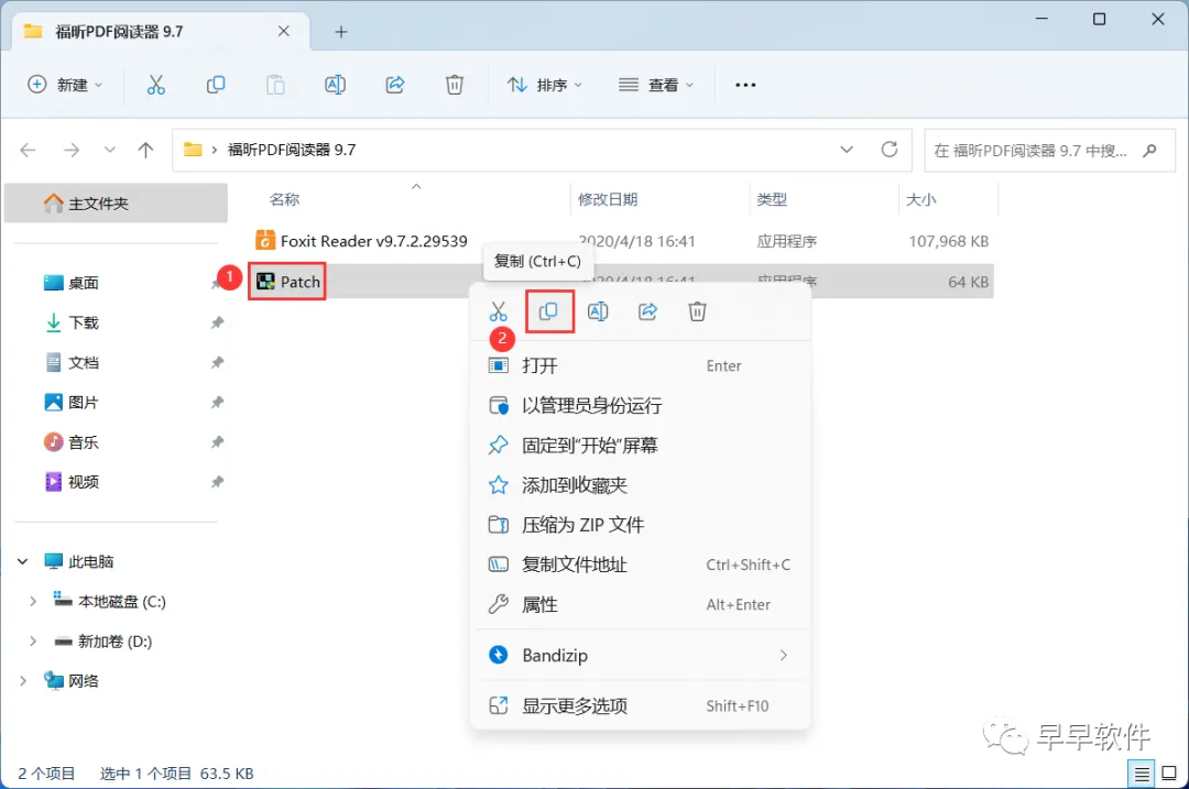 15、回到福昕PDF阅读器 9.7文件夹,找到【Patch】程序,右键点击【复制按钮】