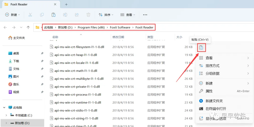 17、右键文件夹的空白处,点击【粘贴按钮】