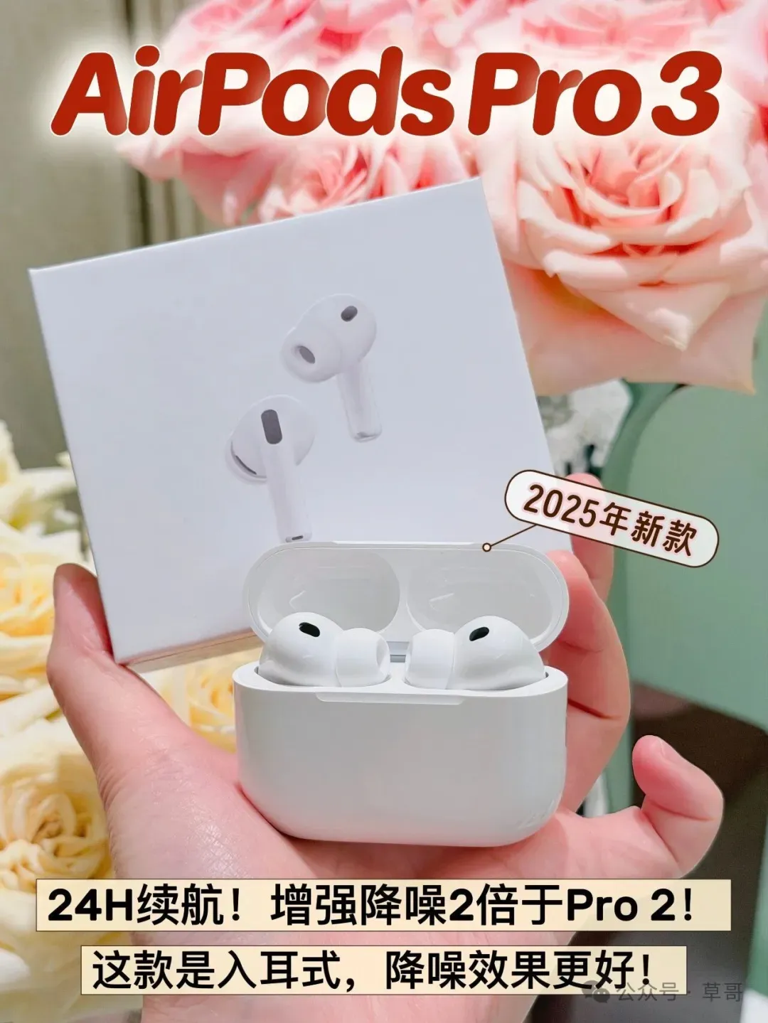 🔶AirPods有新款啦!新款入耳式pro3,舒适度更高,增强降噪效果更好,增强降噪2倍于pro2!如果喜欢入耳又降噪强的首选这款!续航升级后也很厉害!听播客、音乐都非常适合!我一直用的AirPods4也相当不错,又是挂耳又有主动降噪,在挂耳耳机中绝对是降噪头号选手啦!不过想要降噪功能更好的,还得是新款入耳式pro3!