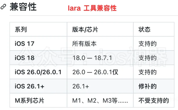 支持系统:iOS 17.1.1 - 18.7.1、iOS 26.0 - 26.0.1(不支持 iPhone 17 系列)