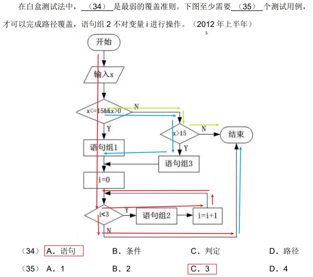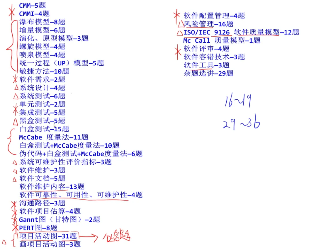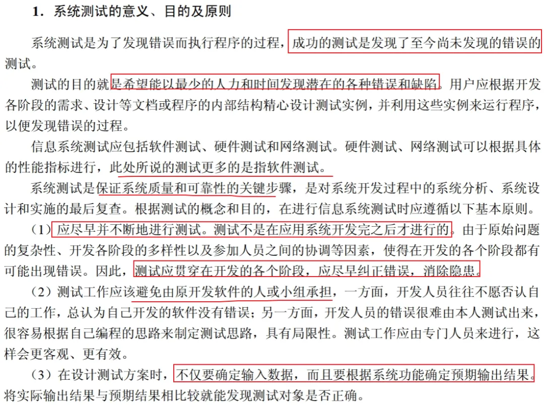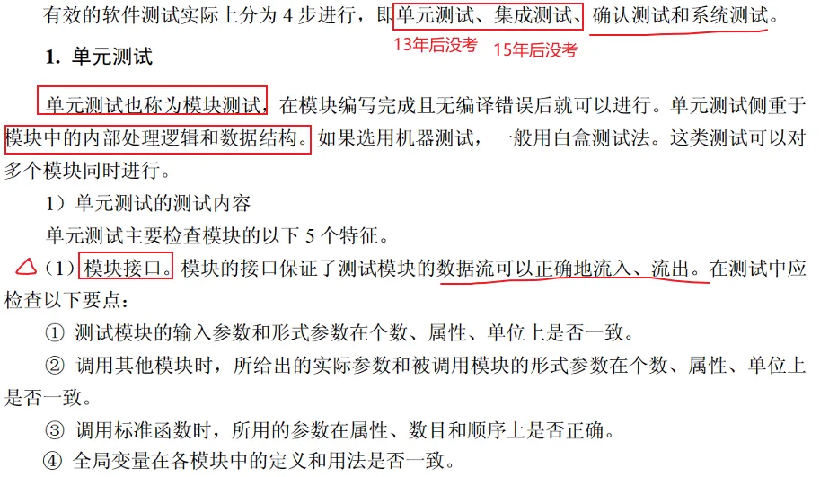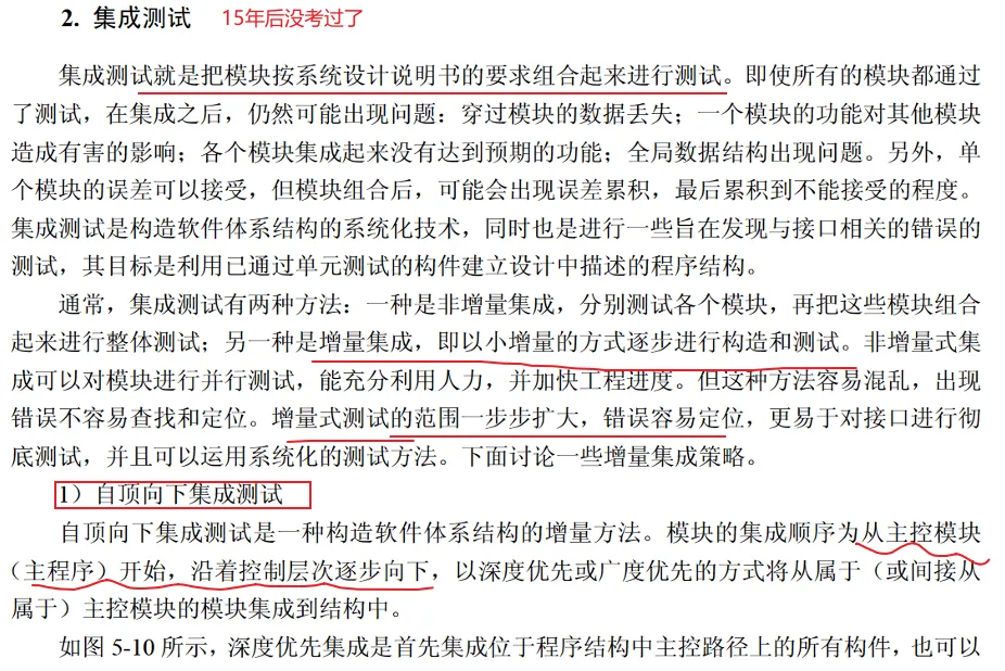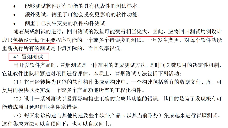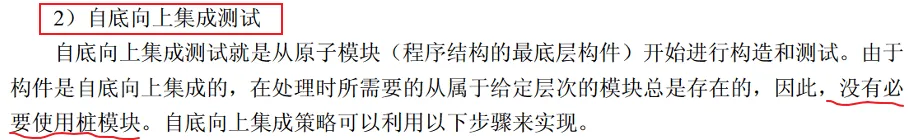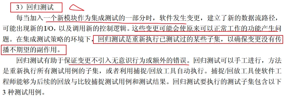 自顶向下集成测试不需要驱动模块 自底向上集成测试不需要桩模块 考的最多的是回归测试(3次)