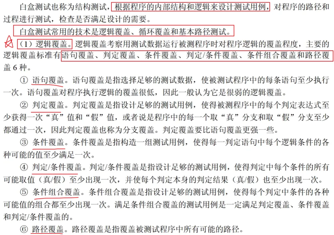 语句覆盖 (最弱) 判定覆盖,别称分支覆盖 条件覆盖 判定条件覆盖 条件组合覆盖 路径覆盖 (最强) (覆盖都是白盒测试,从上到下依次增强)