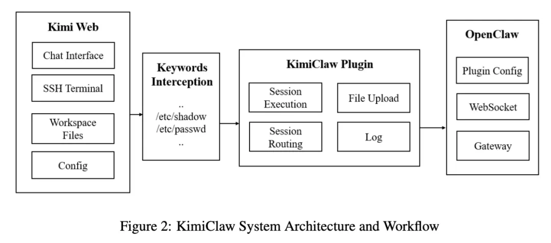 KimiClaw 在论文里的定位,不是一个完全重写的新框架,而更像是 Kimi Web 与 OpenClaw 之间的桥接层。