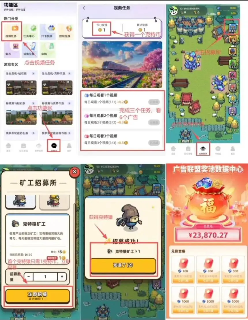 《克特小世界》在原有基础上,增加了猿+猴+包工头三增收,意味着同样时间、同样精力,赚得更多、走得更远、稳得更久。得冲一波,奖励更高,更简单,上限高,