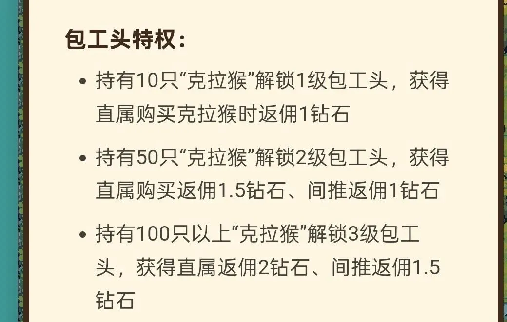 《克特小世界》0撸第一天送克特猿,和购买的产出一样。好友第一次获得克特猿,生产力增幅2%,团队长福音。一个钻石起赠