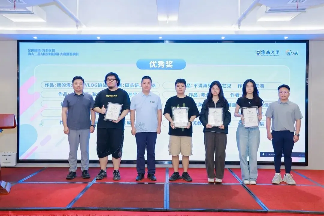以AI为笔,绘青春华章;以光影为媒,抒海大情怀。4月12日,海南大学“海大三英”AI短视频创作大赛颁奖典礼在国际交流中心二楼会议厅圆满举行,历经征稿、初审、终审等多个环节的激烈角逐,13个优秀作品脱颖而出,现场嘉宾、获奖选手与师生代表齐聚一堂,共同见证这场创意与科技交融的青春盛宴。