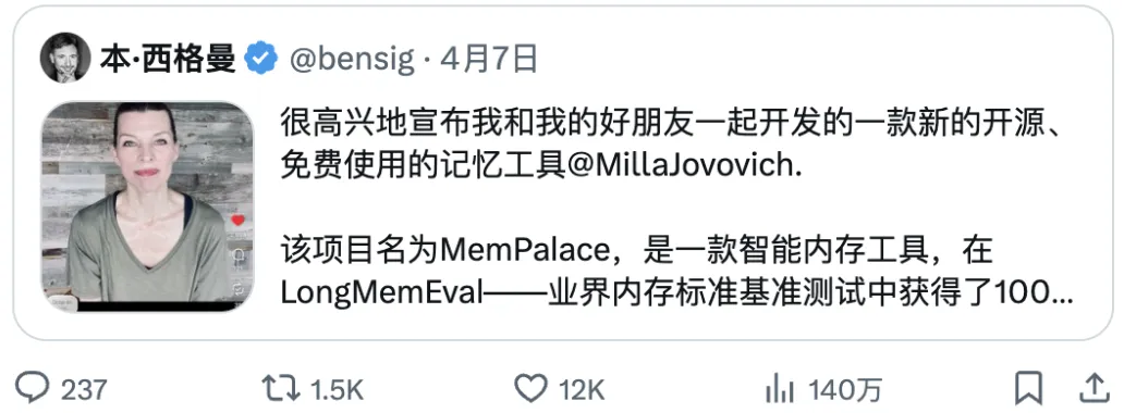 影坛女星进军 AI 圈的噱头,给记忆宫殿赚足了眼球。借助明星效应,MemPalace 在短时间内火爆出圈,短短几天内就拉动了本地化 AI 记忆技术的普及。