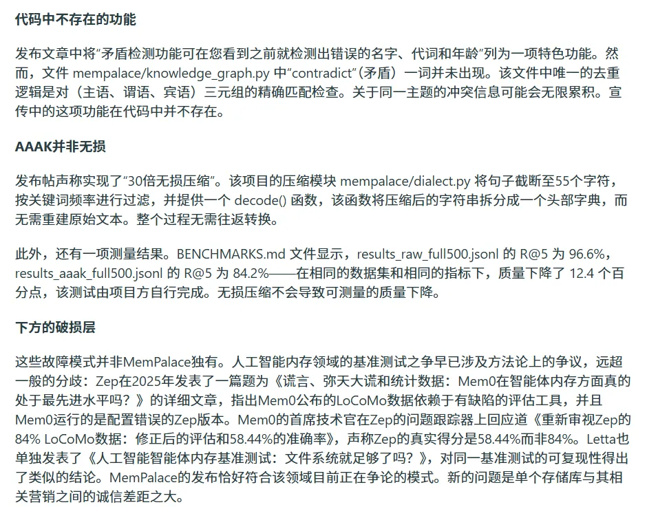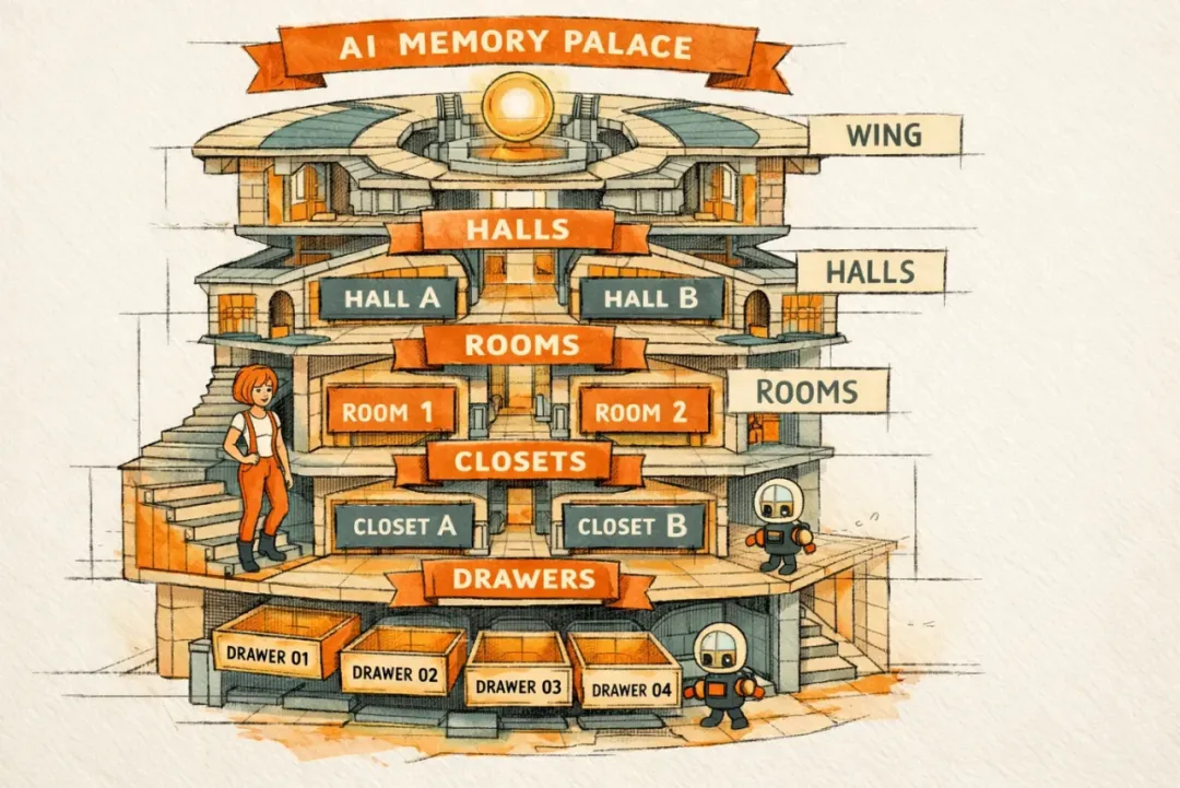 在技术大佬的眼中,MemPalace 中的侧厅(Wings)、房间(Room)、抽屉(Drawers)等,本质上就是我们电脑里一直在用的层级文件系统,底层不还是最普通的文件夹逻辑么?所以,技术圈认为它的底层是 1970 年代的文件夹逻辑,中间层是向量搜索,只是最外层套了个古希腊文学的壳。