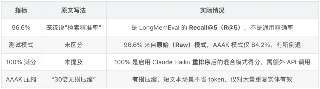 短短 24 小时,MemPalace 就被开发者社区批的体无完肤,本·西格曼默默将 LongMemEval 原始模式中的得分更新为 96.6%。