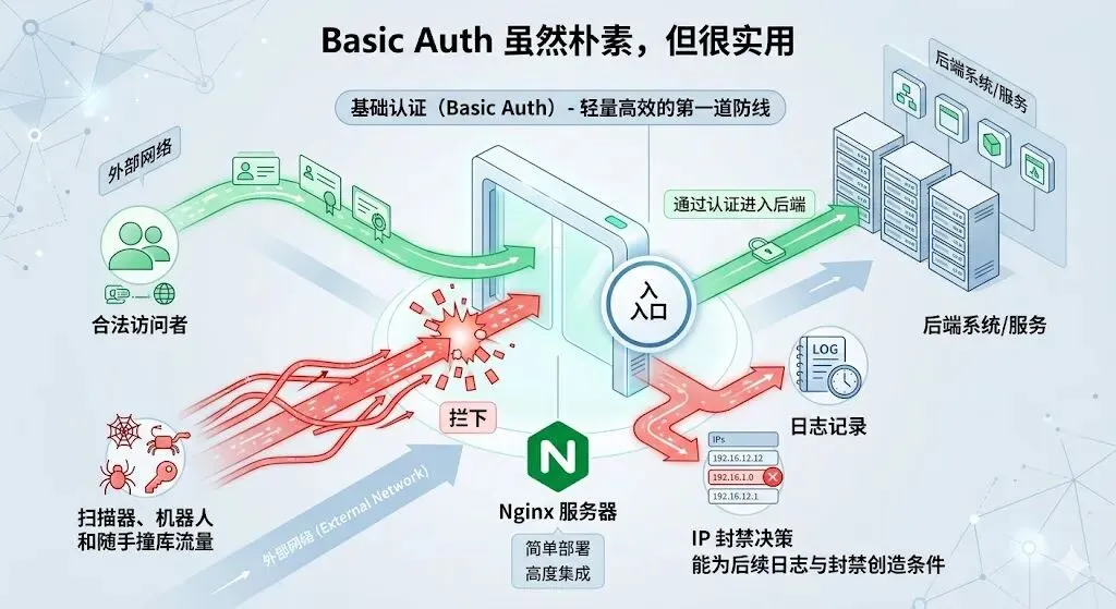 3. Nginx 入口层:负责 HTTPS、反代、Basic Auth、统一域名入口