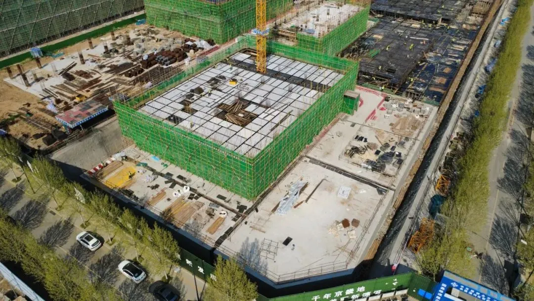 4月9日,瀍河科技园项目南北区科研楼模板铺装完成。