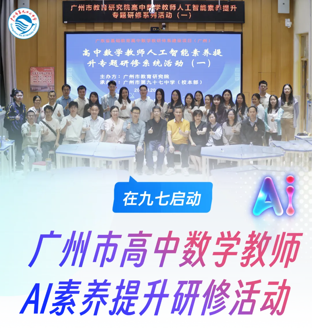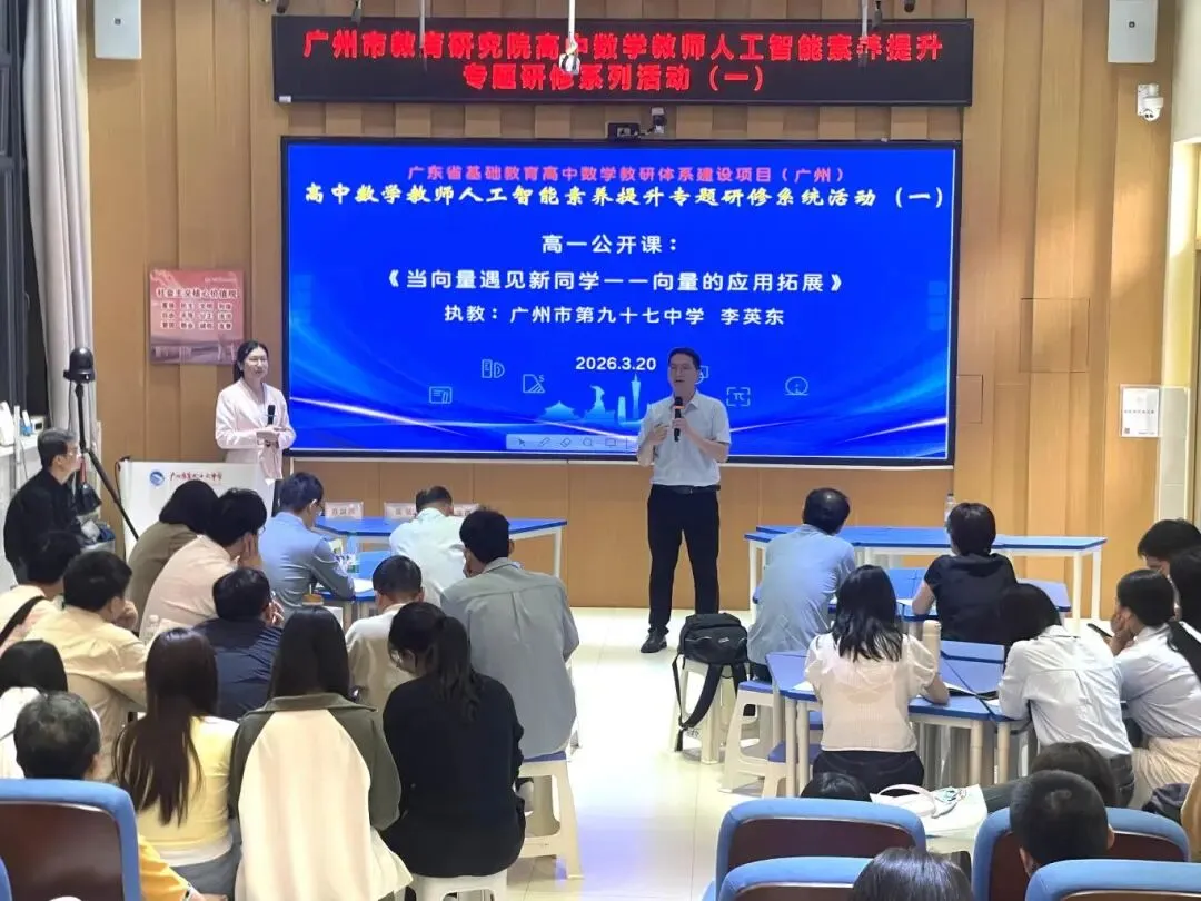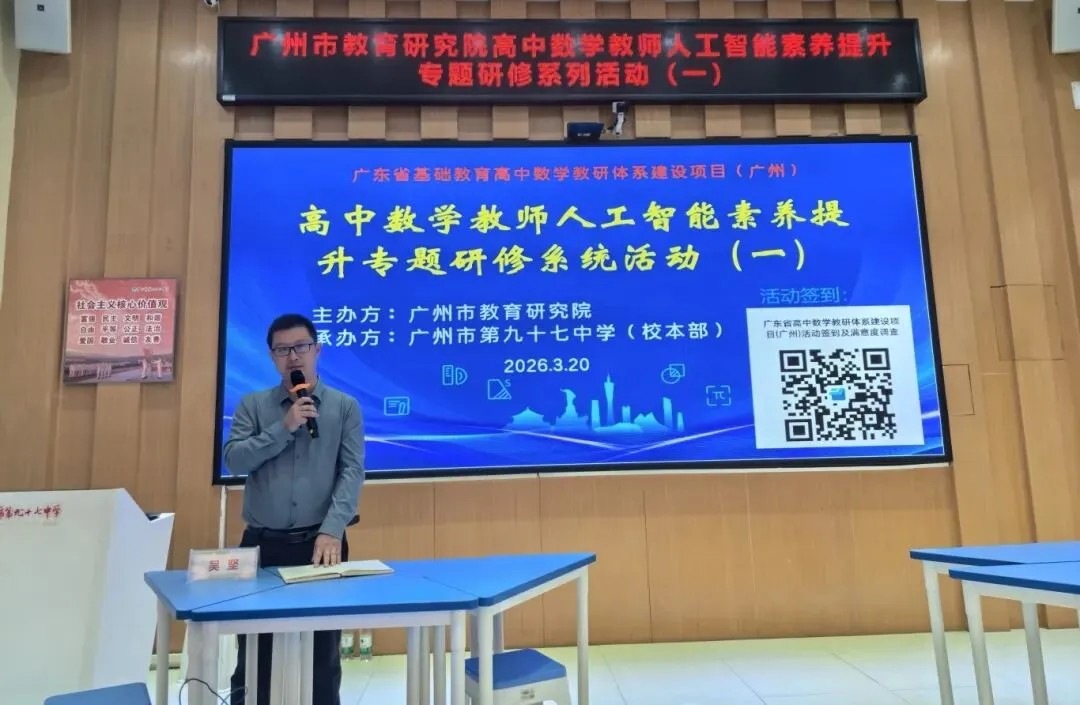 为深入贯彻落实国家教育数字化战略行动,推动人工智能技术与高中数学教学的深度融合,2026年3月20日,由广州市教育研究院主办,广州市第九十七中学承办的“广州市高中数学教师人工智能素养提升专题研修系列活动”正式拉开帷幕。