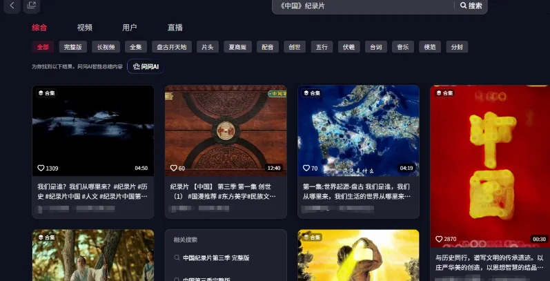 推荐去搜《中国》纪录片,画面质感极好——古风、厚重、有文化感。
