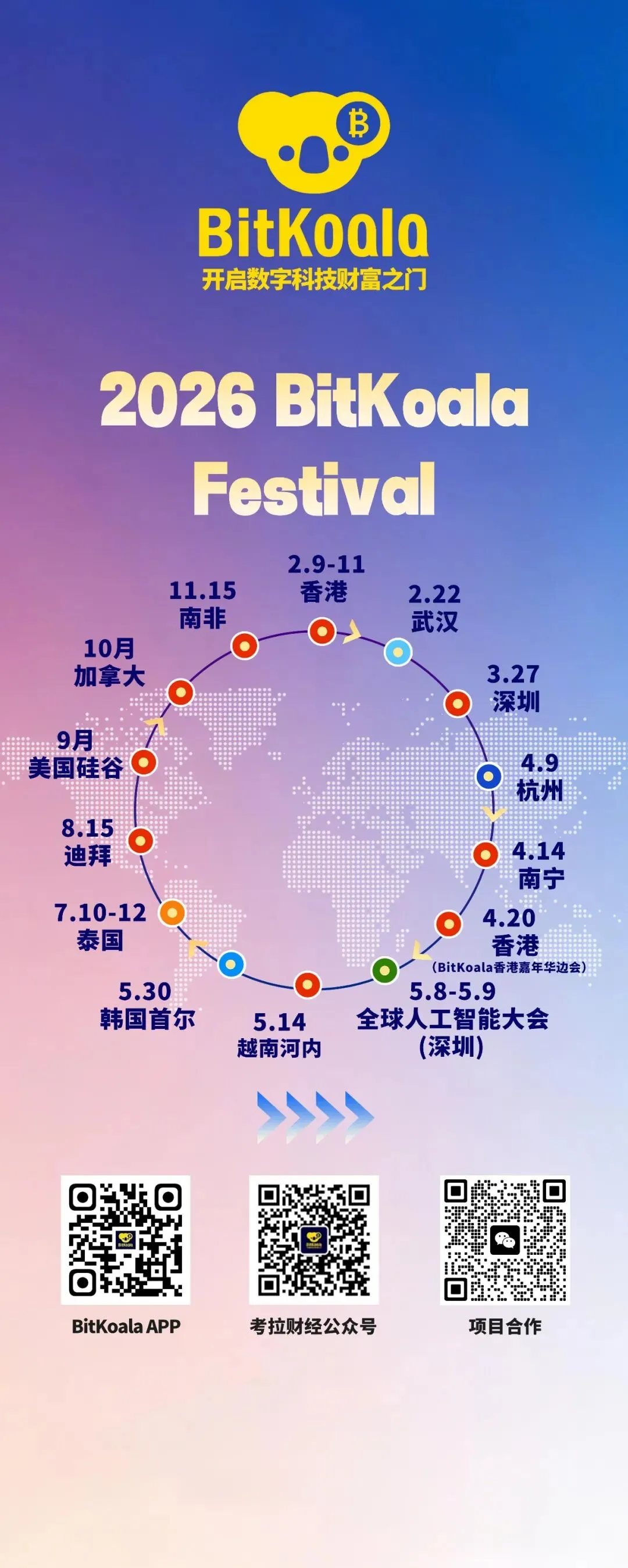 2026年,考拉财经全球行启程:香港(已完成),武汉(已完成)、杭州(已完成)、南宁(4月14日),香港(Web3嘉年华*边会4月20日),成都,越南(5月14日),韩国(5月30日)、深圳、澳门,新加坡、马来西亚、越南,泰国,印尼、,日本,沙特,迪拜、南非,埃塞俄比亚,澳洲,美国、加拿大——与全球创新者同行,为科技变革发声!http://admin.bitkoala.io/upload/8b/160cc0e2352da7d222dce2fcb3f9c2.apk注:本文仅为行业活动回顾与趋势分析,不构成任何投资建议。我国明确禁止虚拟货币相关交易炒作活动,请严格遵守国家监管规定,远离非法金融活动。