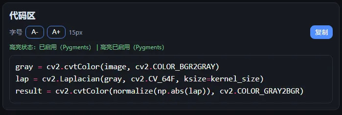 而且代码高亮不是纯前端随便糊一下,是后端通过 Pygments 生成,主题用了 Monokai。看起来会舒服很多,也更适合做演示截图。