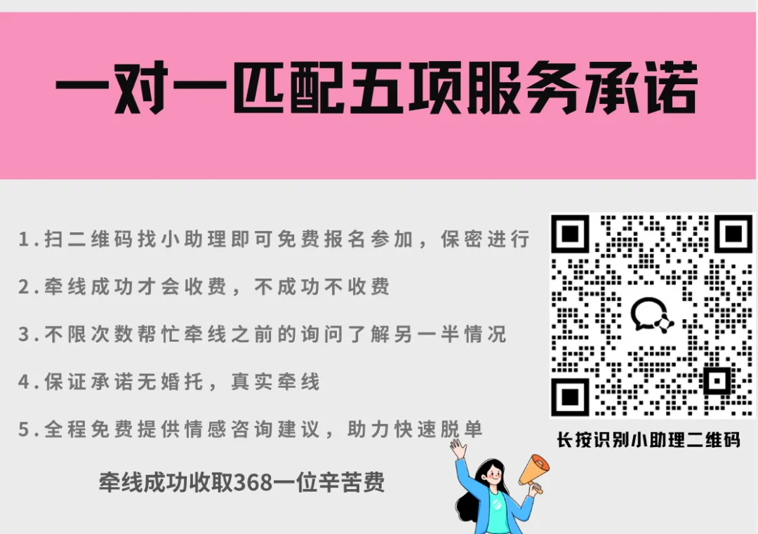【温馨提示】 本平台这边不是婚介所,没有线下门店,不会收集你们的手机号码,更不会有任何人打电话邀请你去婚介机构,所有的牵线咨询服务都是只通过微信沟通。