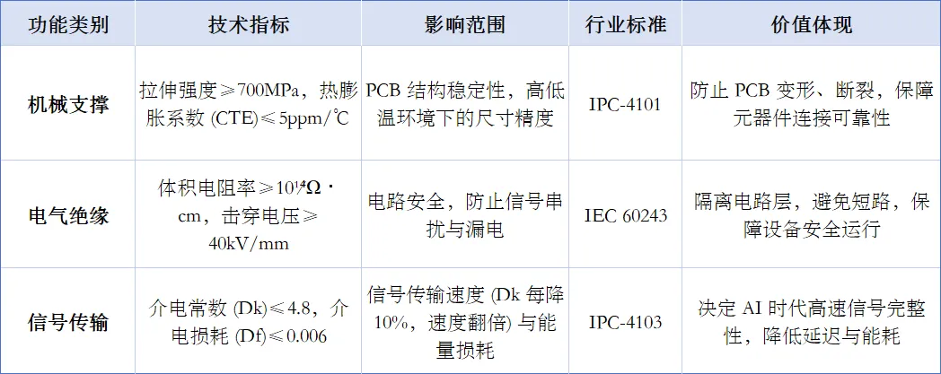 电子布的核心价值体现在三大不可替代的功能,直接决定 PCB 乃至整个电子设备的性能、可靠性与使用寿命: