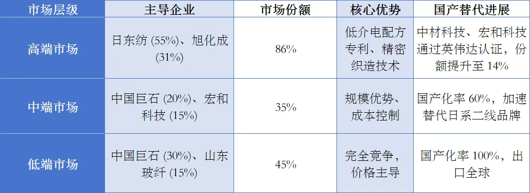 配方壁垒:低介电玻璃配方需数千次实验优化,日系企业 (日东纺、旭化成) 掌握 NE-glass 等核心配方,国内中材科技、国际复材实现突破