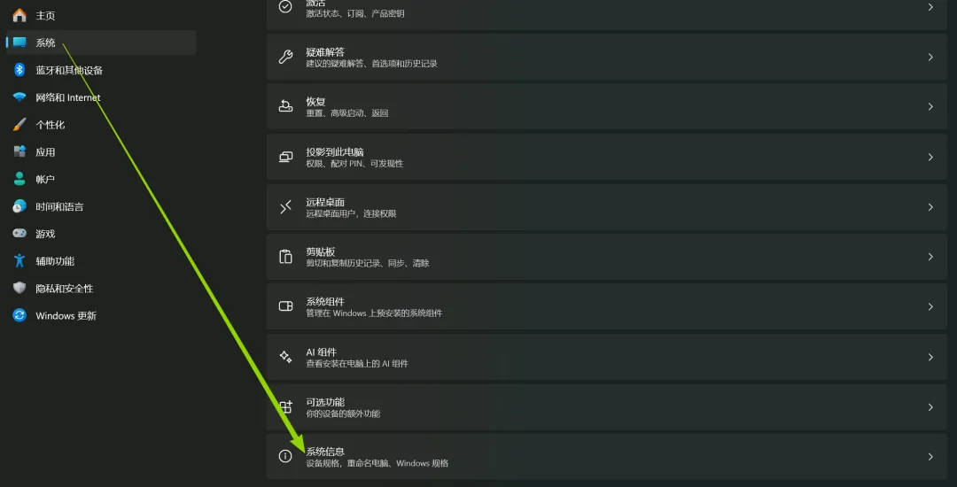 2️⃣点击 “系统”,滚动到底部并点击 “系统信息”。