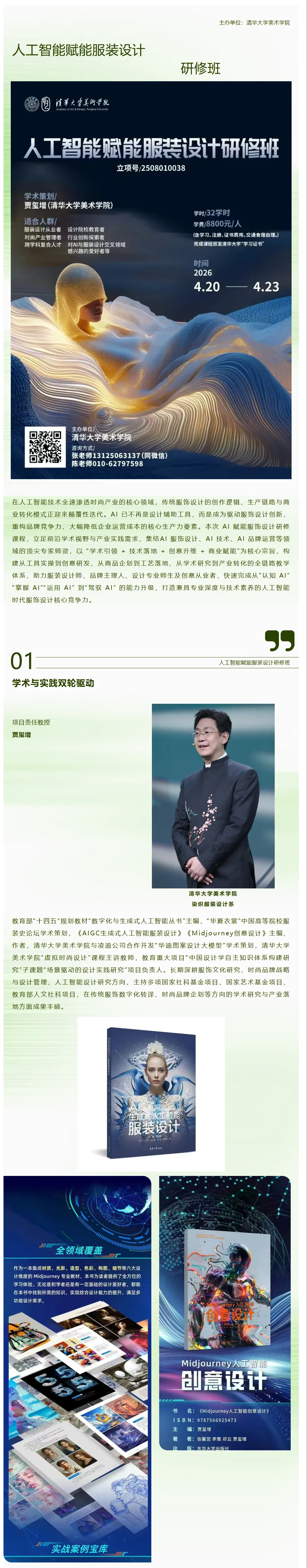 AI 赋能服饰设计的浪潮已经到来,本次研修课程将以专业的师资、系统的内容、落地的教学,陪伴每一位学员把握时代机遇,在服饰设计的创新之路上行稳致远,共同推动时尚产业的数字化、智能化发展。