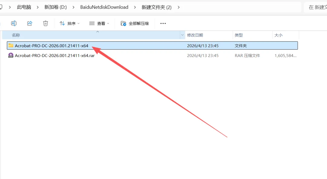 2.双击进入解压后的【Acrobat-PRO-DC-2026.001.21367-x64】文件夹。