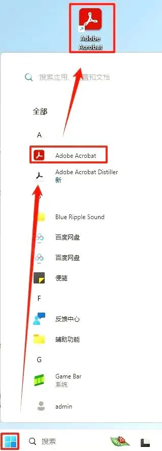 7.从开始菜单将【Adobe Acrobat】图标拖至桌面建立快捷方式。