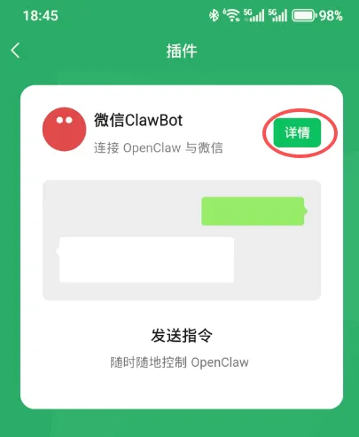 手机微信:iOS 8.0.70+ 或 安卓 8.69+(我的是最新版) OpenClaw:已经部署在电脑/服务器上 微信号:个人号就行