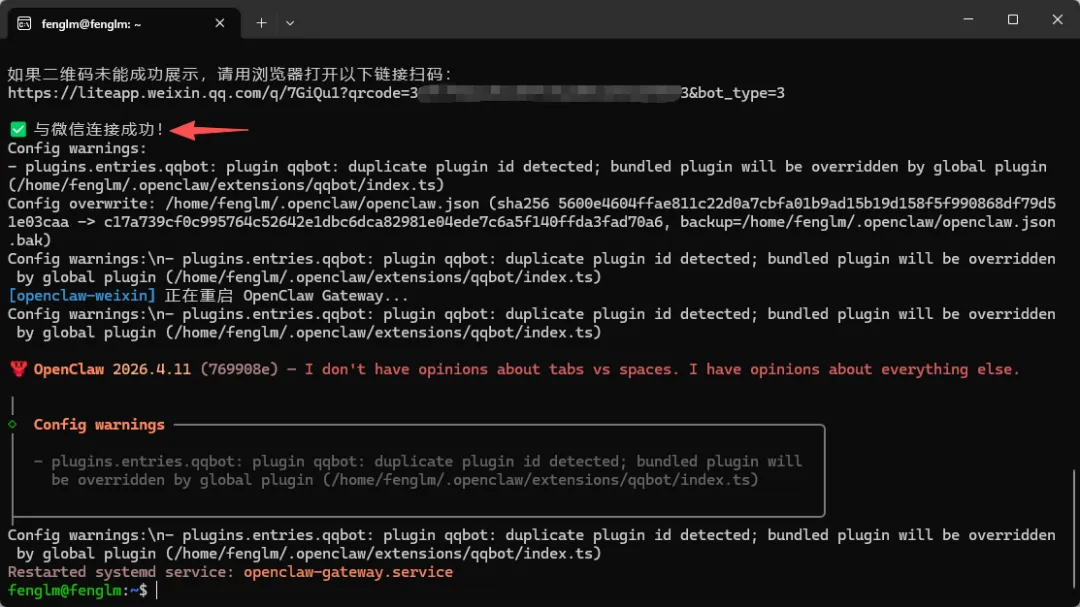 这应该是目前门槛最低的OpenClaw接入方式了—不用企业资质、不用申请API权限、不用复制密钥。